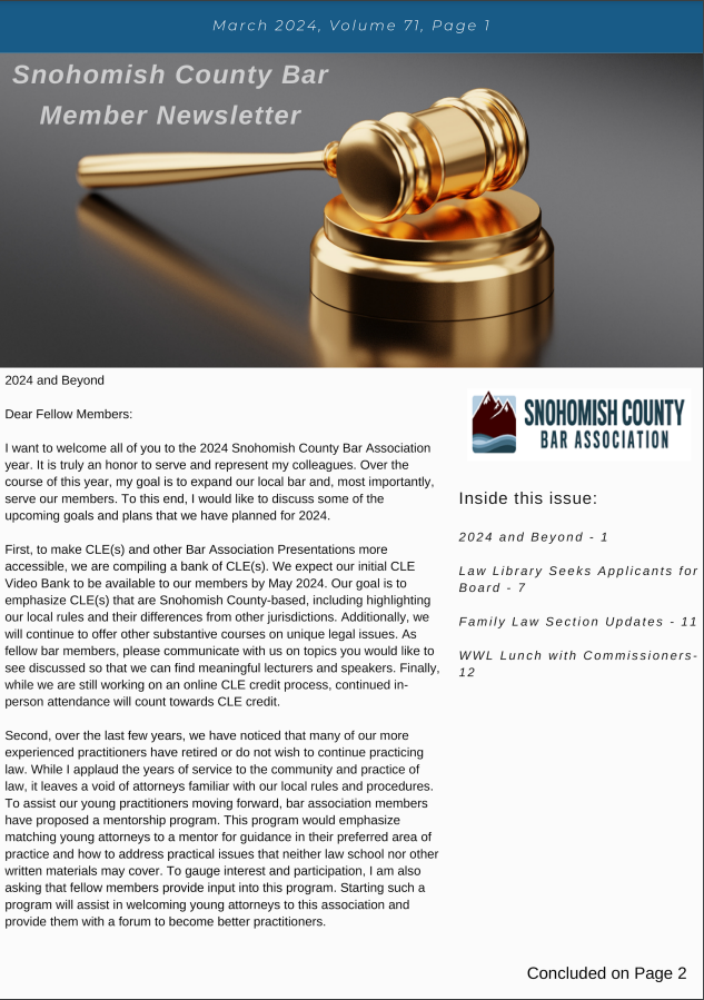 In This Issue 2024 and Beyond Law Library Seeks Applicants for Board Family Law Section Updates WWL Lunch with Commissioners SCBA-March-24-Newsletter-2Download previousFebruary 2024nextApril 2024